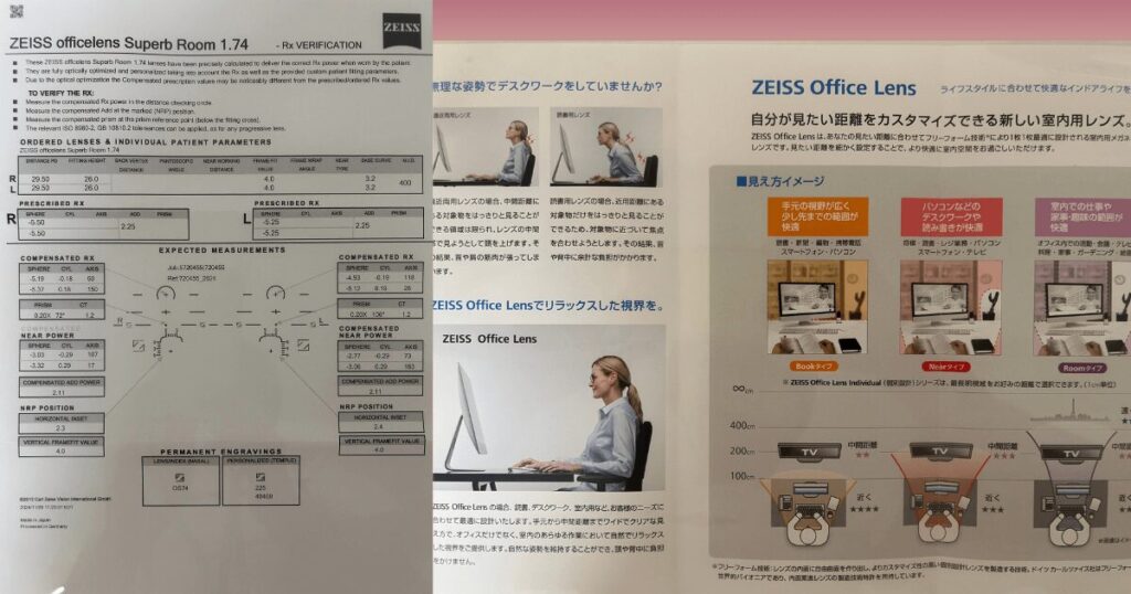 ZEISSは実際の装用位置やフレーム形状を考慮して、度数を最適化(補正)してくれます。